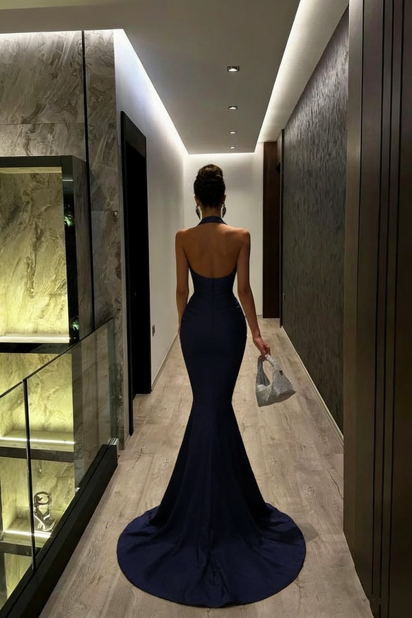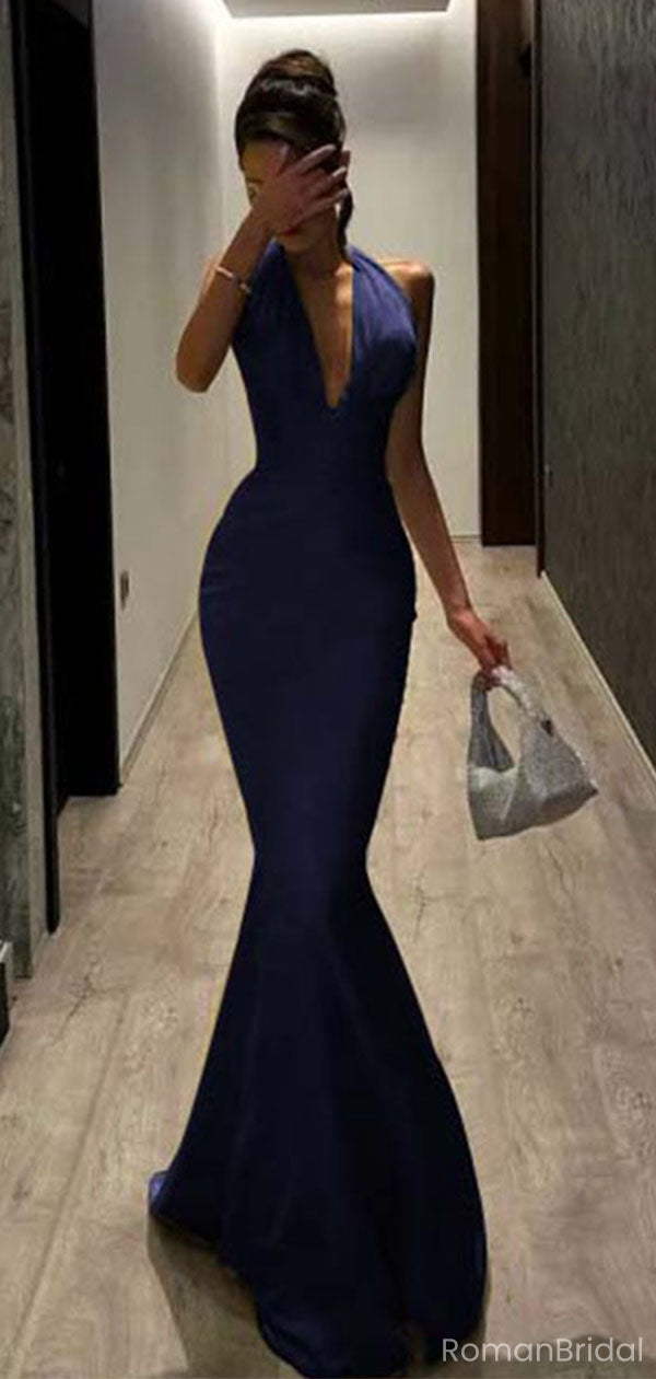 Sexy Navy Blue V-Neck Mermaid Long Prom Dress Ideas, Evening Party Dresses, OLP1661