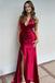 Sexy V-neck Sleeveless Mermaid Satin Evening Prom Dresses Online, OLP857