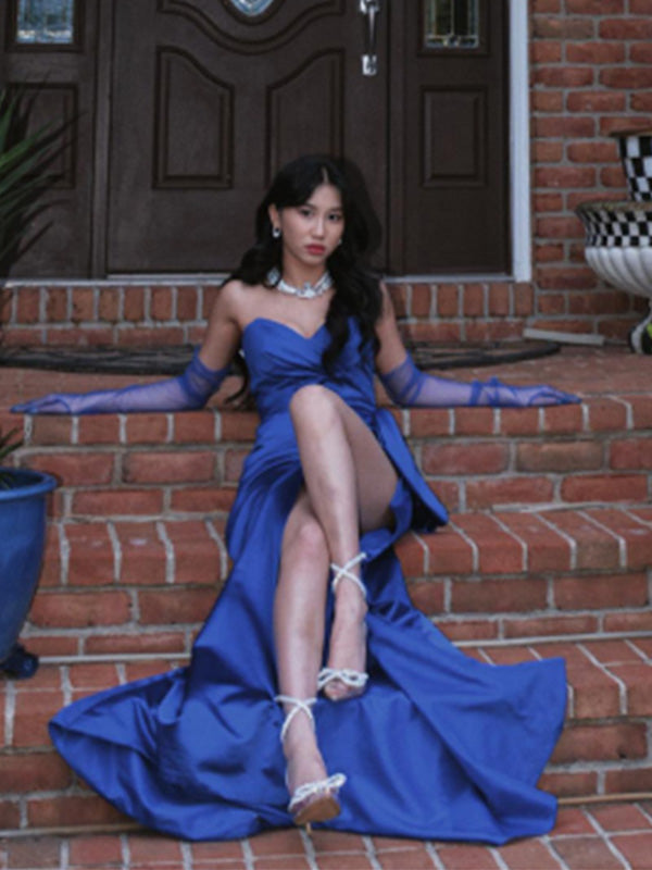 Sexy Sweetheart Sleeveless Mermaid Satin Long Evening Prom Dresses Online, OLP762