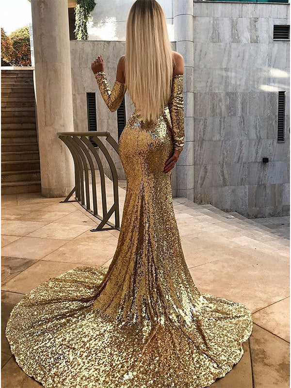 Sexy Sweetheart Full Sleeve Mermaid Sequin Long Evening Prom Dresses Online, OLP708