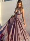 Shiny Pink Spaghetti Strap A-Line Long Prom Dress Ideas, Evening Party Dresses, OLP1285