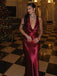 Sexy V-neck Sleeveless Mermaid Satin Long Evening Prom Dresses Online, OLP740
