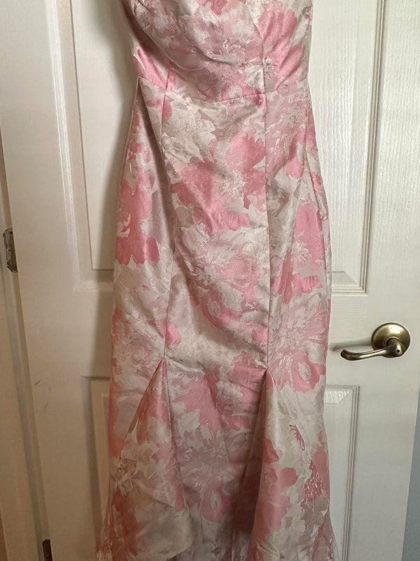 Printed Sweetheart Sleeveless Mermaid Satin Long Evening Prom Dresses Online, OLP791