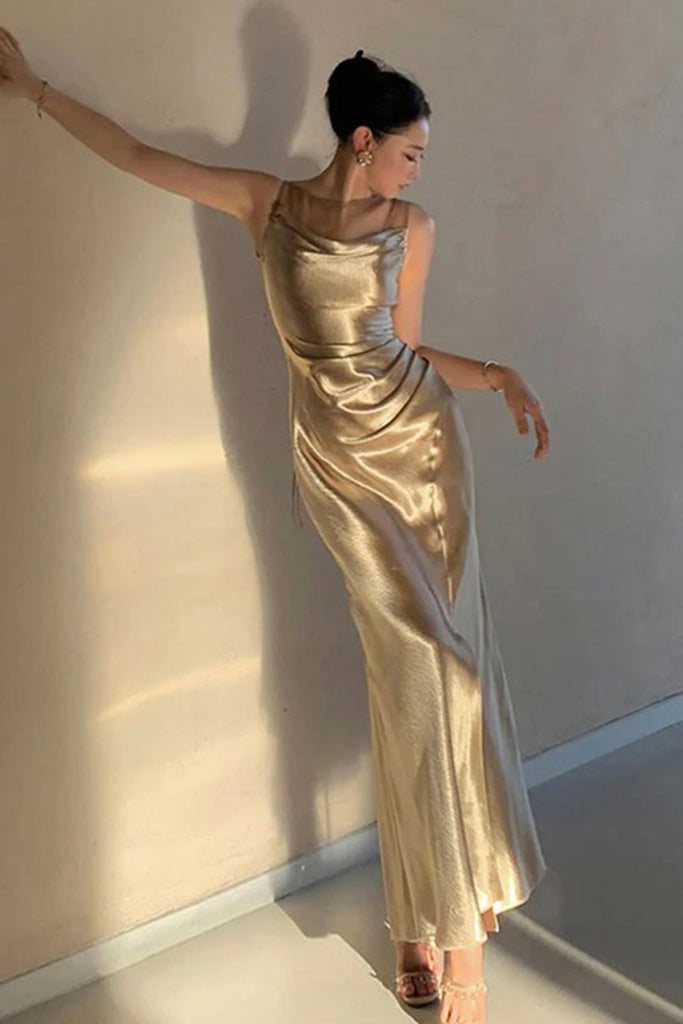Sexy Spaghetti Strap Sleeveless Mermaid Satin Long Evening Prom Dresses Online, OLP743