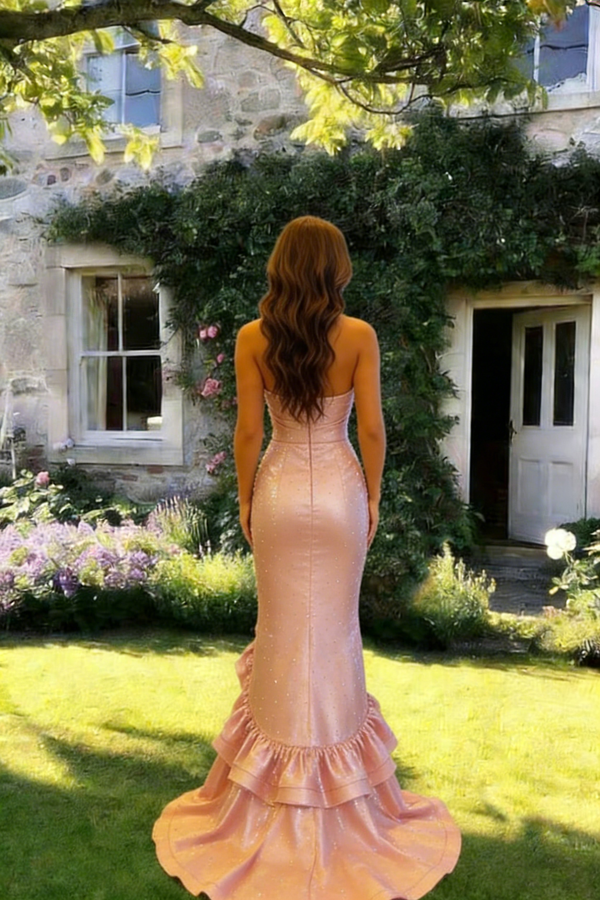 Unique Blush Pink Glitter Gala Dress Cascading Ruffles High Slit Prom Gown,OLP1772