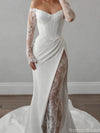 Elegant White Long Sleeve Lace Mermaid Long Wedding Dresses With Sweep Trailing,WD0560