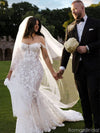 Elegant White Sweetheart Lace Mermaid Long Wedding Dresses With Sweep Trailing,WD0559