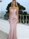 Classy Pink Satin Formal Dress Sweetheart Beaded Trim Strapless Fit,OLP1966