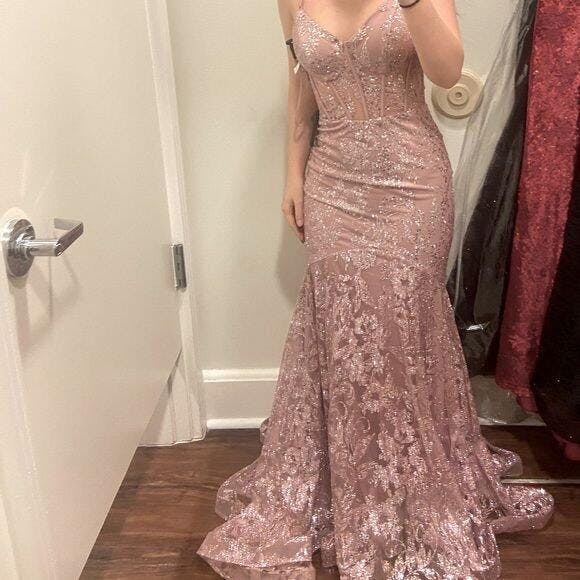 Elegant Pink Mermaid Prom Gown Lace Applique Sheer Corset Bodice Sparkling Beach Party,OLP1737