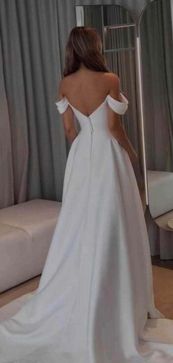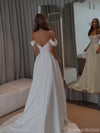Elegant White Off-Shoulder A-Line Long Wedding Dresses With Sweep Trailing,WD0557