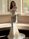Modern Ivory Mermaid Prom Dress 3D Rose Neckline Long Sleeve Formal,OLP1949