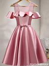 Pretty Dusty Pink Cold Shoulder Homecoming Dress Short A-Line Satin Ruffle Gown,HD1229