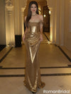 Sexy Gold Sequin Prom Dress Off Shoulder Ruched Bodice Mermaid Silhouette,OLP1979