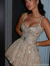 Shiny Spaghetti Strap A-Line Sequin Short Homecoming Dresses For Party,HD1152
